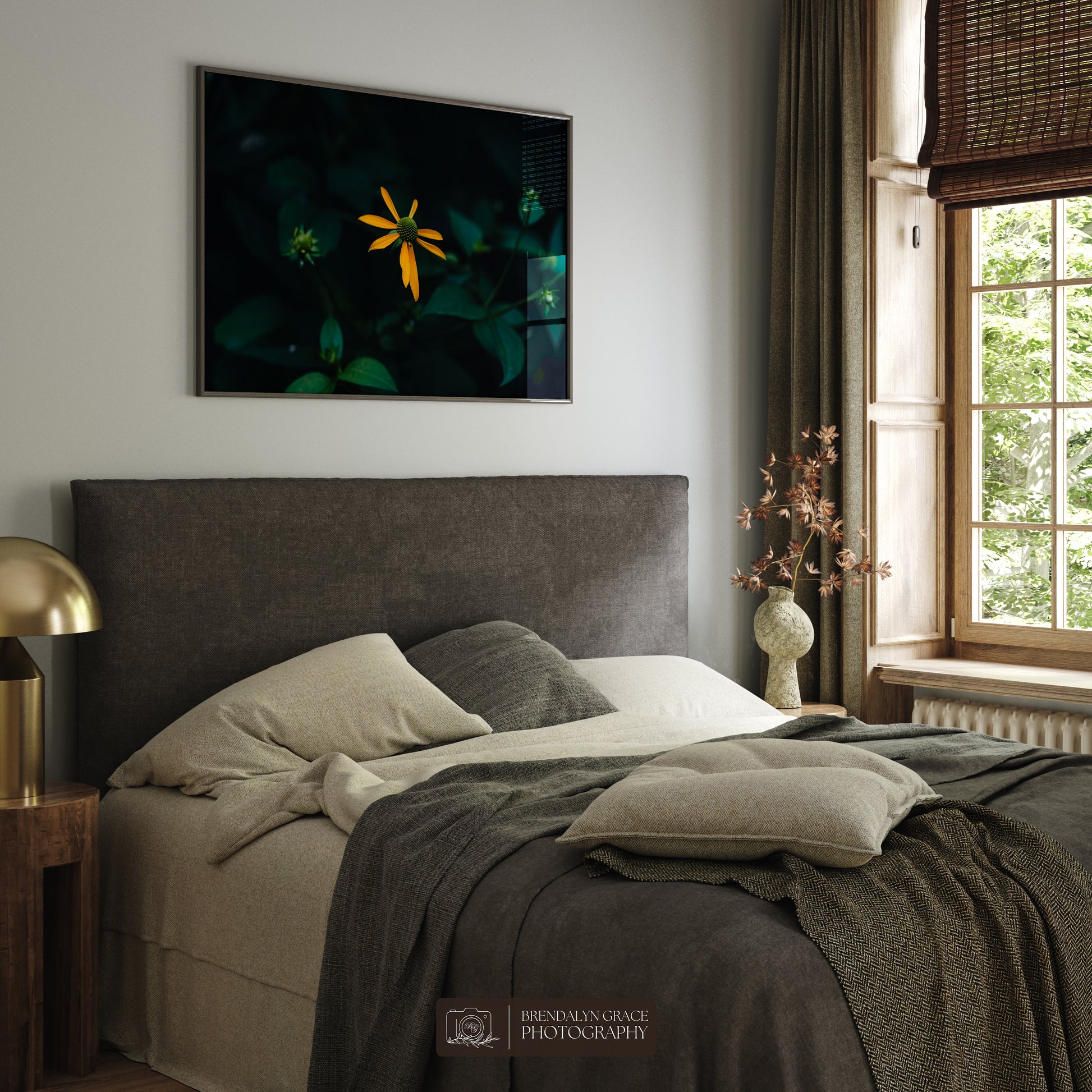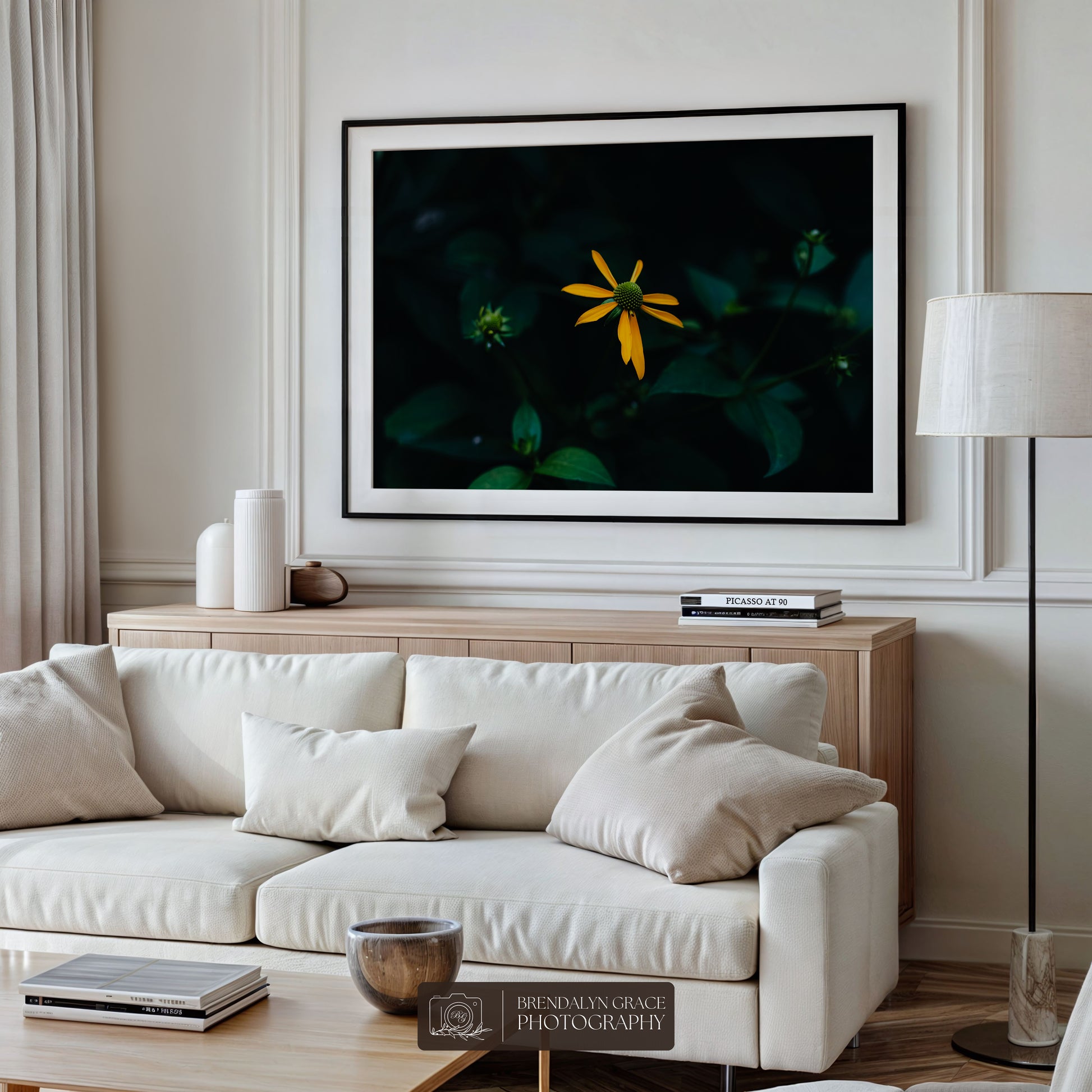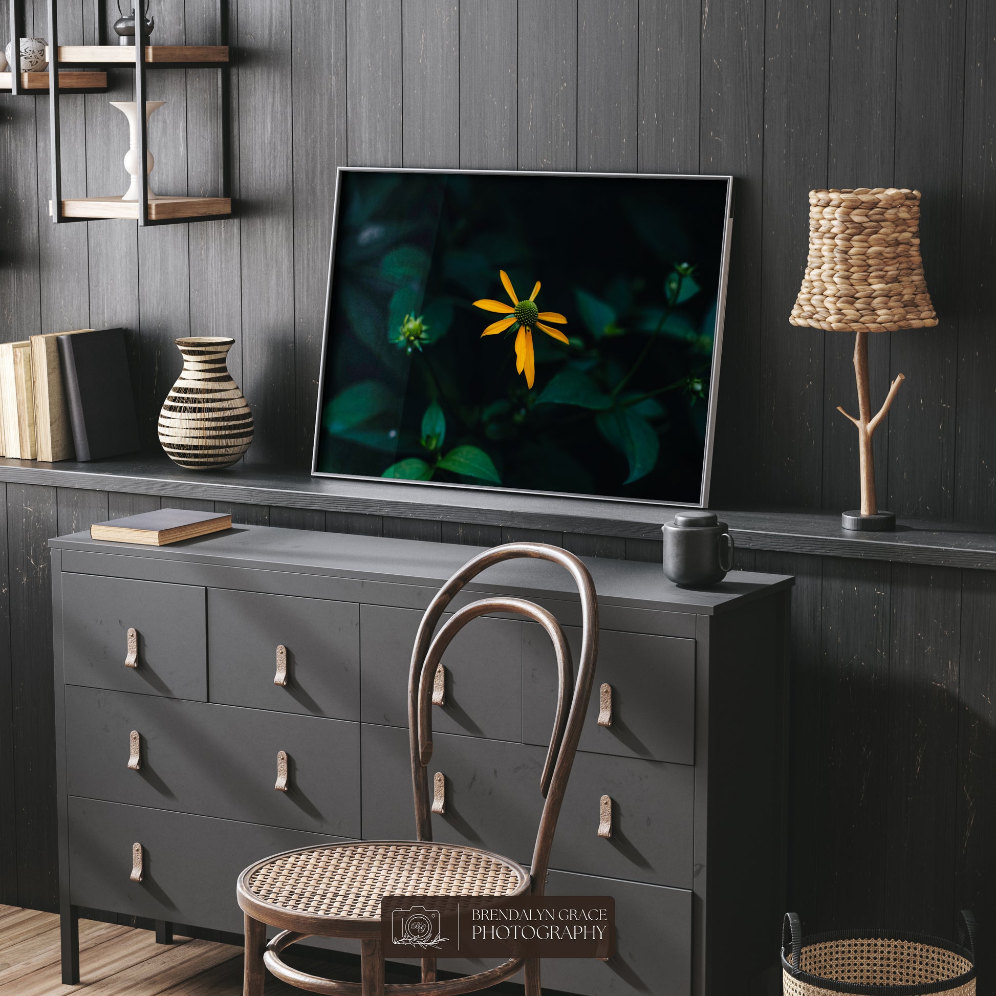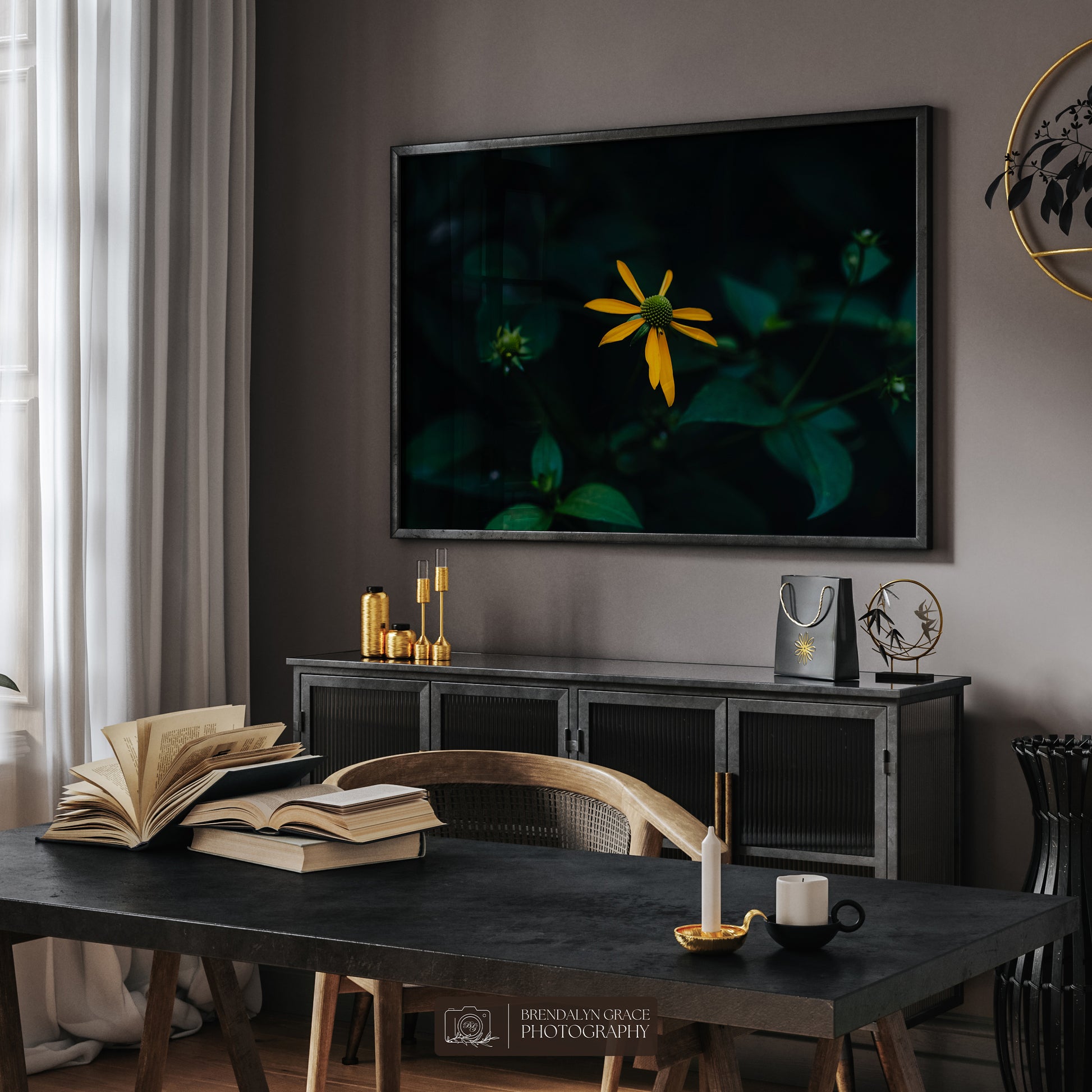 This is a print of a Black-Eyed Susan flower in Black Rock Mountain State Park, Georgia, USA. On August 7th of 2022, I took this picture of this flower as I was walking along the lake trail. I loved the beautiful pop of yellow that it brought out of the greenery.